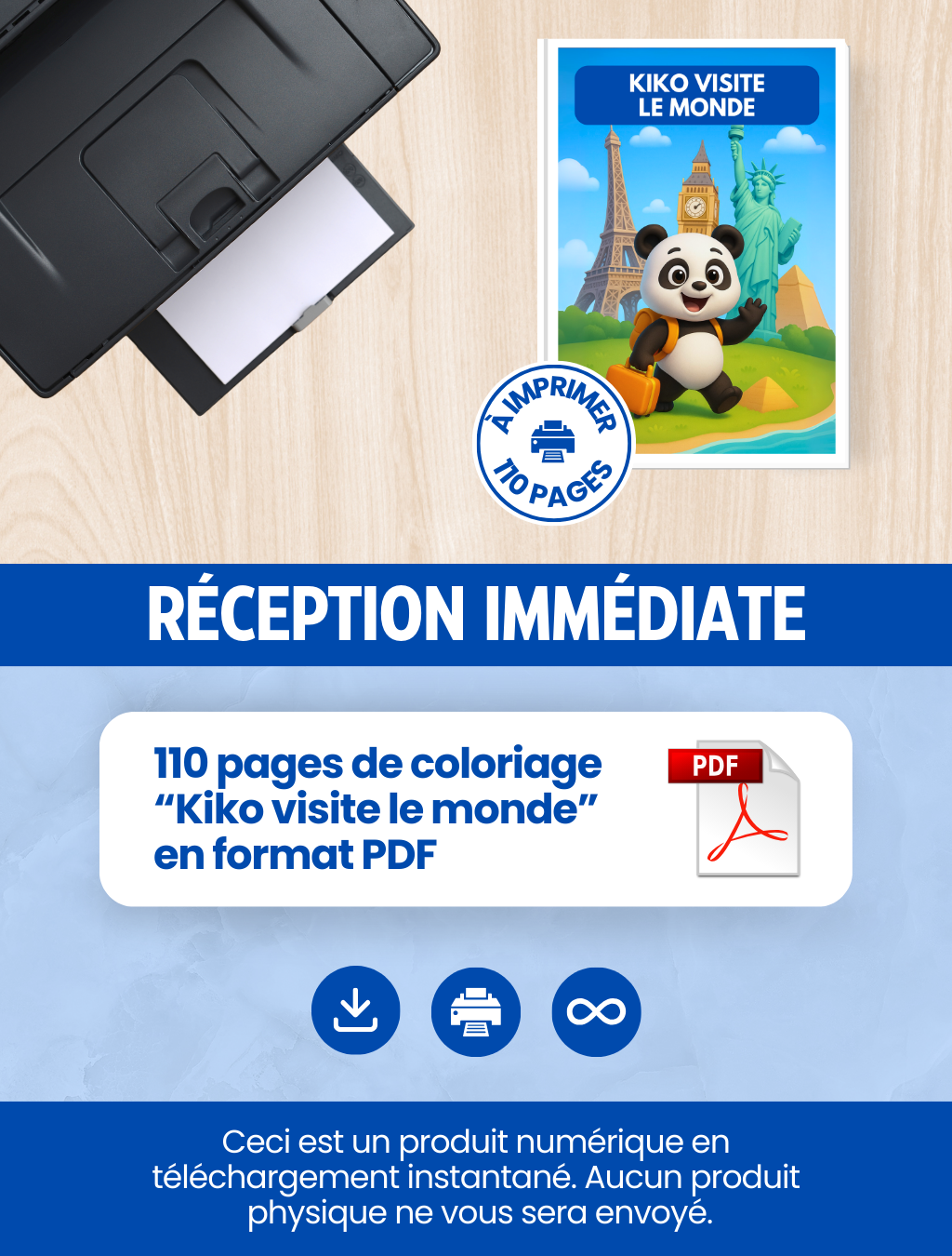 Embarque avec Kiko pour un tour du monde en coloriage ! Du désert aux montagnes, en passant par les grandes villes, les plages exotiques ou les monuments célèbres… chaque page est une nouvelle aventure à découvrir. Ce pack complet regroupe 110 coloriages uniques autour du thème du voyage et des cultures du monde : paysages lointains, tenues traditionnelles, monuments célèbres, transports variés… et bien plus encore ! 🌍✈️🧳