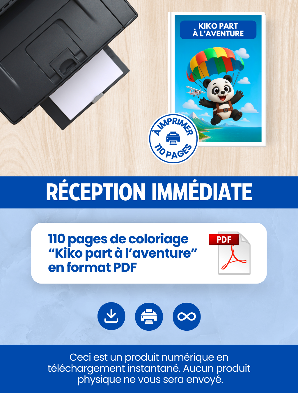 Prépare-toi à vivre des aventures incroyables avec Kiko, le petit panda intrépide au grand cœur ! Safari, saut en parachute, accrobranche, camping, fête foraine, exploration sous-marine, détente au spa… Ici, chaque page est une mission palpitante à colorier. Un pack de 110 coloriages conçu pour nourrir l’imaginaire, développer la créativité… et transformer chaque moment en épopée haute en couleur ! 🐼🌋🪂🎢
