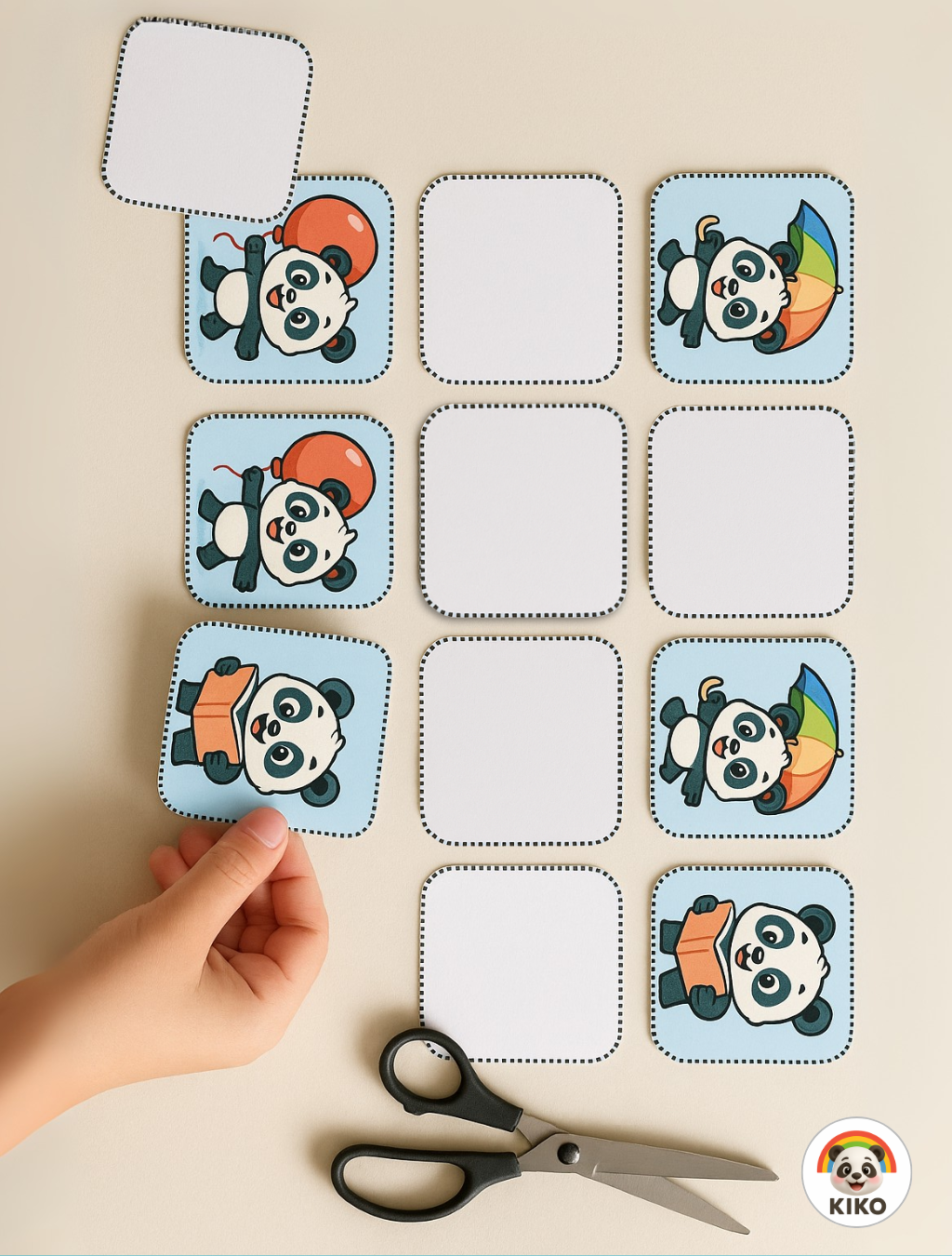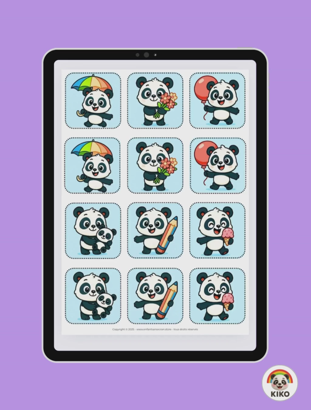 • 36 cartes carrées à découper (18 paires d’illustrations de Kiko)